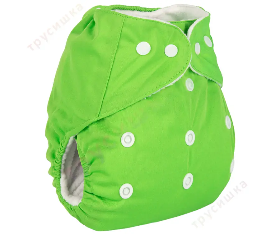 Внешний слой подгузников (ламинированный полиэстер, PUL) очень мягкий, тонкий, не теряет цвет после стирок и быстро сохнет.