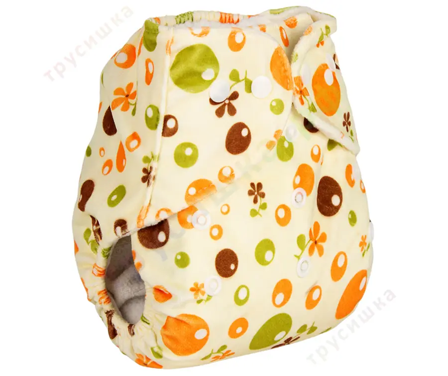 Внешний слой подгузников (ламинированный полиэстер, PUL) очень мягкий, тонкий, не теряет цвет после стирок и быстро сохнет.