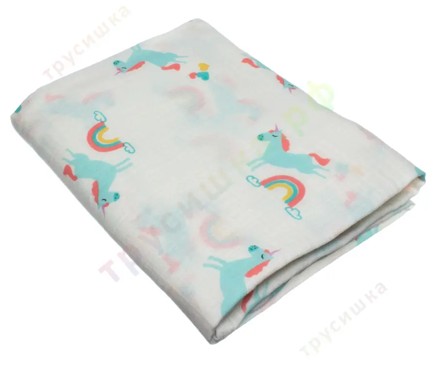 Муслиновая пеленка Голубой единорог (хлопок)