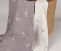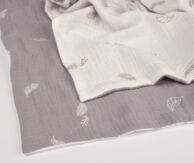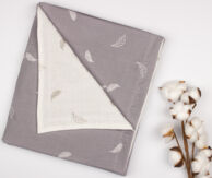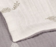 Муслиновый плед Листья на белом/Листья на сером, 100 x 120 см, 4 слоя
