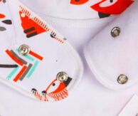 - Слюнявчик имеет универсальный размер от 0 месяцев до 3 лет, который регулируется с помощью двойного ряда кнопочек;