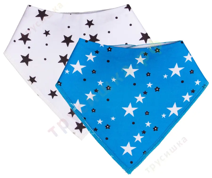 Набор слюнявчиков-бандан Звезды на голубом и белом, 2 шт.