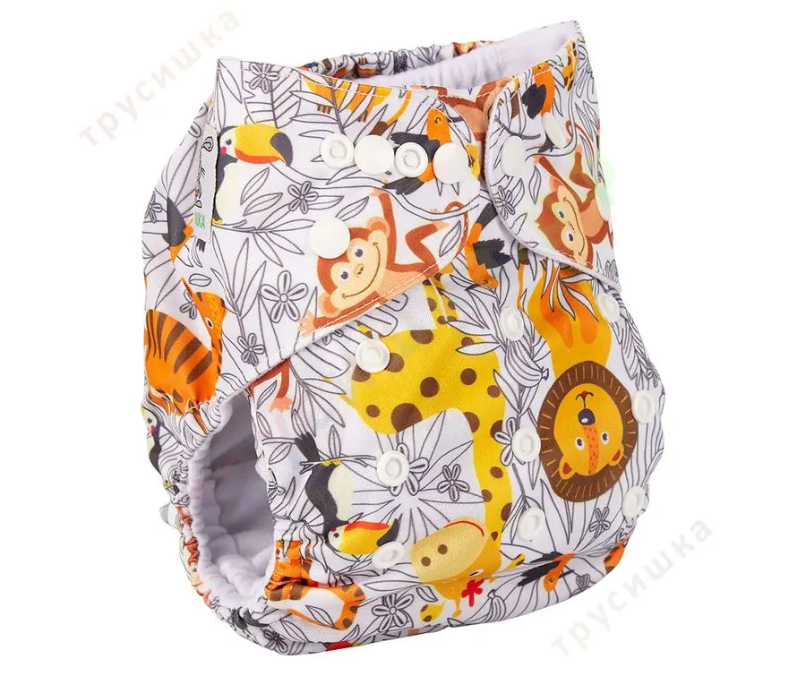 Классический многоразовый подгузник на кнопках Трусишка с внутренним слоем из микрозамши и защитными бортиками от протекания.
