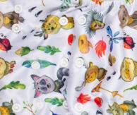 - Внешний слой подгузника - ламинированный полиэстер - ткань, обратная сторона которой проламинирована полиуретановой микропористой мембраной. Благодаря своей пористой структуре, непромокаемая дышащая мембрана пропускает воздух, при этом удерживает влагу, таким образом подгузники прекрасно "дышат", но не протекают. Ламинированный полиэстер абсолютно безопасен в использовании, не выделяет химических компонентов и неприятных запахов.