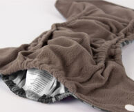 - Внутренний слой подгузника - бамбуковый угольный фибр. Особое свойство ткани - это отвод влаги от кожи ребёнка. Ткань пропускает влагу сквозь себя (во впитывающий слой), но сама при этом не намокает, поэтому малыш чувствует себя сухо и комфортно после мочеиспускания.