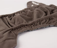 - Внутренний слой подгузника - бамбуковый угольный фибр. Особое свойство ткани - это отвод влаги от кожи ребёнка. Ткань пропускает влагу сквозь себя (во впитывающий слой), но сама при этом не намокает, поэтому малыш чувствует себя сухо и комфортно после мочеиспускания.