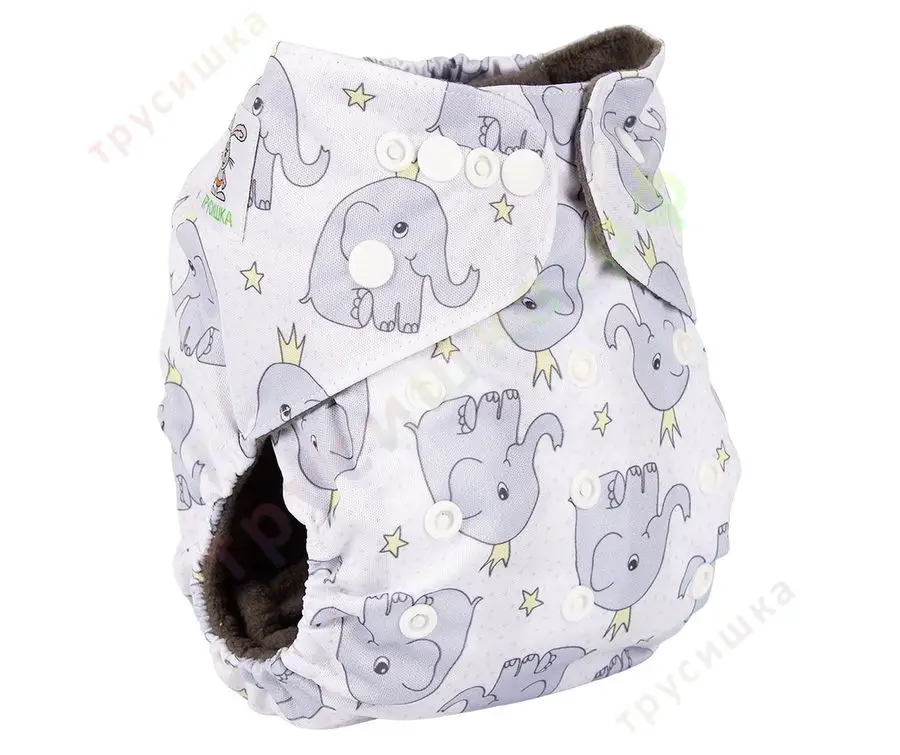 Классический многоразовый подгузник на кнопках Трусишка с внутренним слоем из угольно-бамбукового фибра и защитными бортиками от протекания.