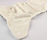 - Внутренний слой подгузника — натуральное бамбуковое волокно. Ткань пропускает влагу сквозь себя (во впитывающий слой), и сама при этом остается влажной, вызывая дискомфорт у малыша и способствуя приучению к горшку;
