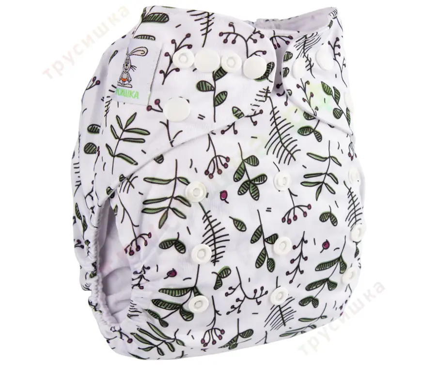 Классический многоразовый подгузник на кнопках Трусишка с внутренним слоем из микрозамши.