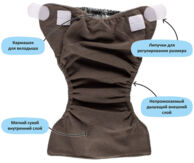 - Подгузник имеет карман для вкладыша. Вкладыш можно вставлять как в карман, так и поверх него.
