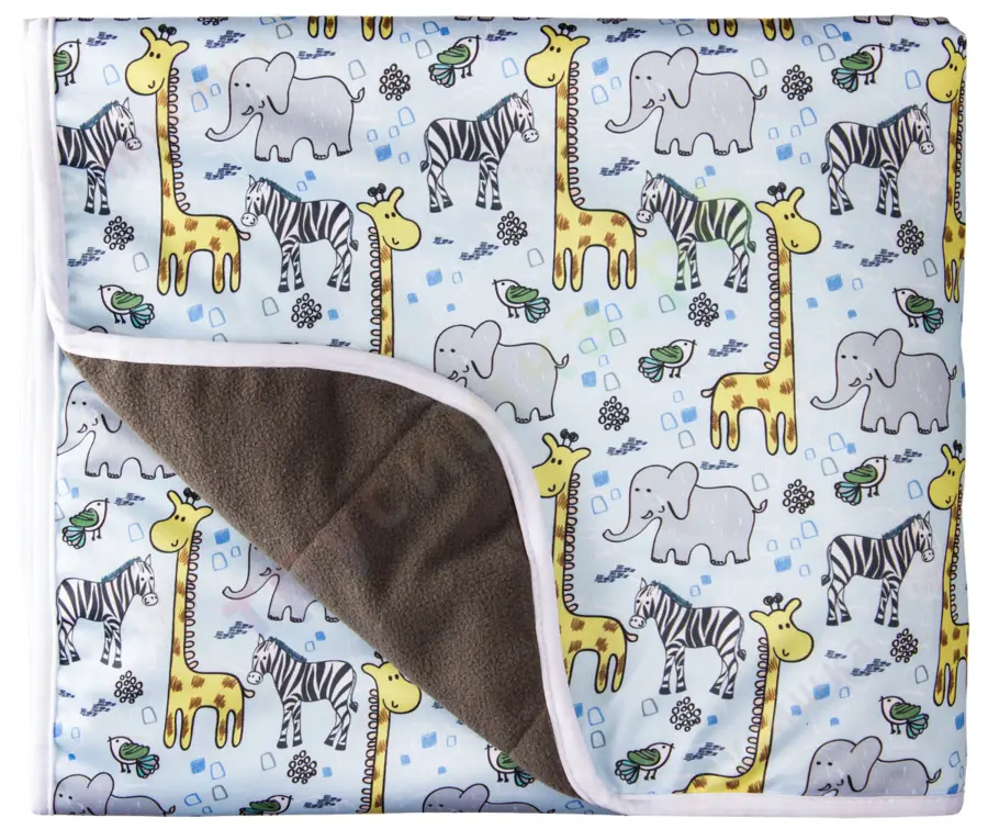 Важно! Ребеночка нужно класть на однотонную серую сторону, именно она впитывает жидкость! Сторона с принтом не впитывает жидкость, ее можно использовать в качестве клеенки или коврика для игр.