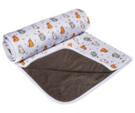 Важно! Ребеночка нужно класть на однотонную серую сторону, именно она впитывает жидкость! Сторона с принтом не впитывает жидкость, ее можно использовать в качестве клеенки или коврика для игр.