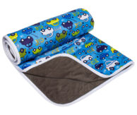 Важно! Ребеночка нужно класть на однотонную серую сторону, именно она впитывает жидкость! Сторона с принтом не впитывает жидкость, ее можно использовать в качестве клеенки или коврика для игр.