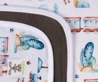Важно! Ребеночка нужно класть на однотонную серую сторону, именно она впитывает жидкость! Сторона с принтом не впитывает жидкость, ее можно использовать в качестве клеенки или коврика для игр.