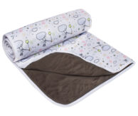 Важно! Ребеночка нужно класть на однотонную серую сторону, именно она впитывает жидкость! Сторона с принтом не впитывает жидкость, ее можно использовать в качестве клеенки или коврика для игр.